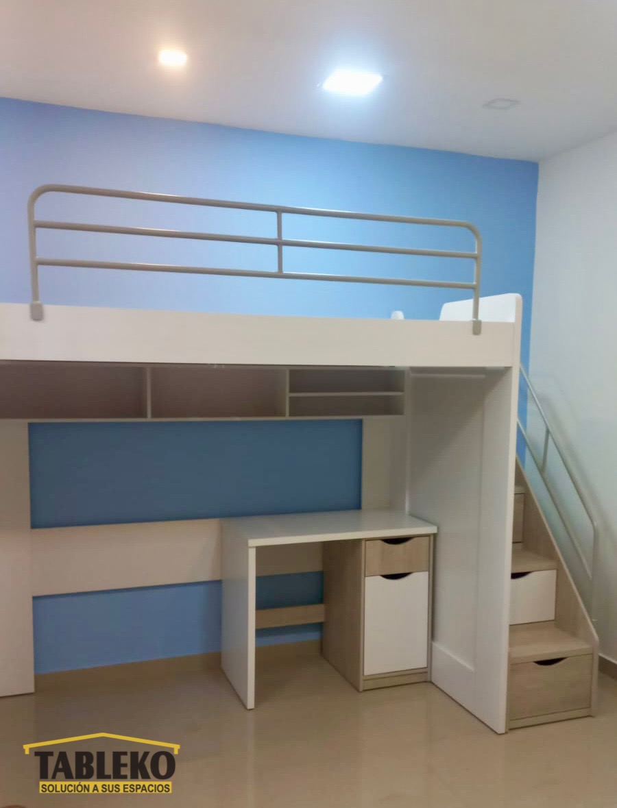 Muebles juveniles y ahorradores de espacio con materiales de primera calidad acordes a las intensas actividades de los más jóvenes de la casa, asegurando así una mayor durabilidad. En tableko proponemos opciones en diseño y colores logrando que los niños y jóvenes puedan escoger su propio estilo.